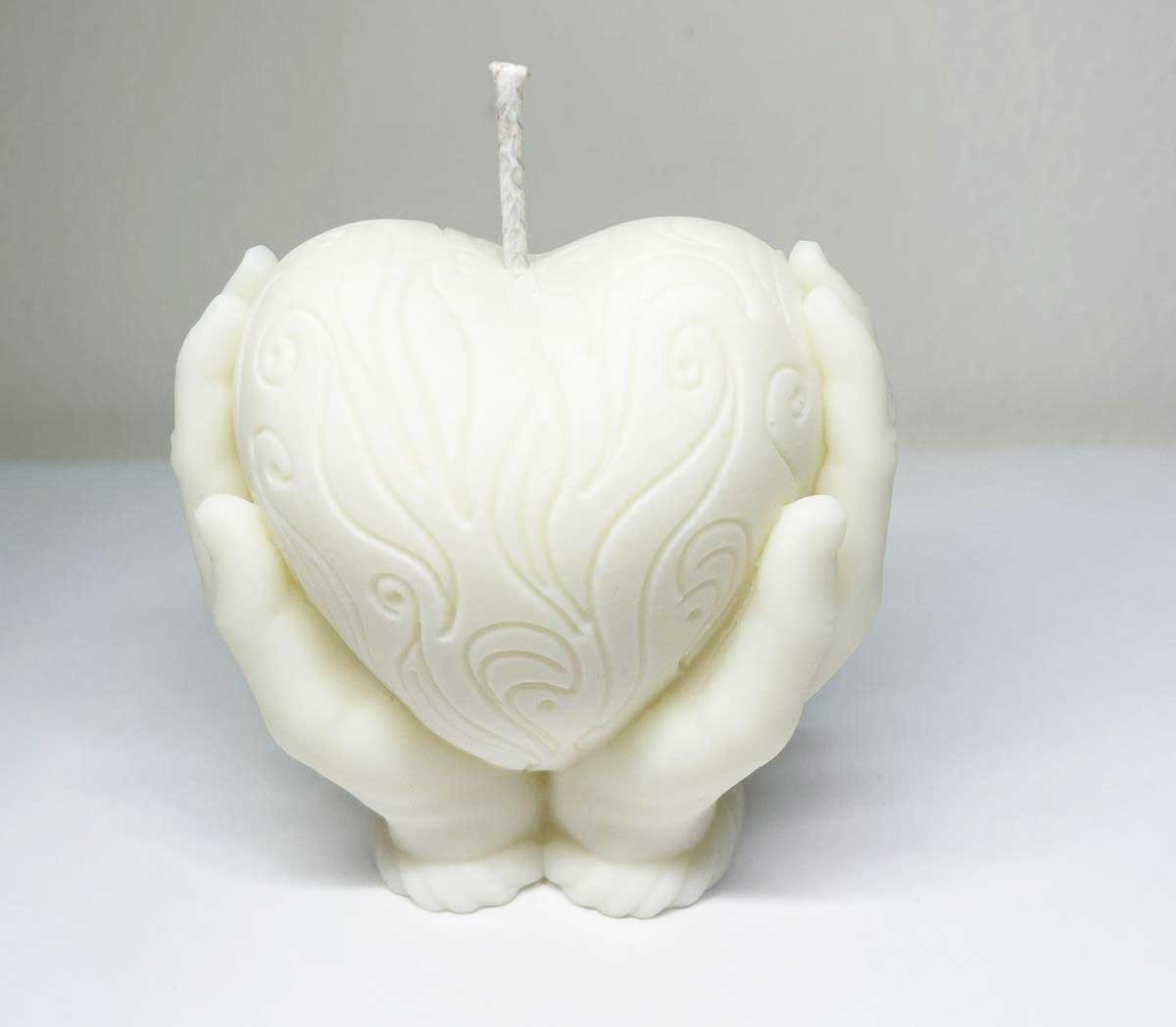 Candela profumata "Mano con cuore" in cera di soia naturale